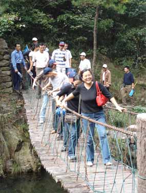 10月21日,我院黨政工團(tuán)聯(lián)合組織全體員工赴桐廬外婆家、大奇山游玩。早上七點(diǎn)半出發(fā),車行兩個(gè)小時(shí)后,到達(dá)了第一個(gè)游玩目的地——桐廬外婆家。一進(jìn)景區(qū),古色古香的建筑群就映入了大家的眼簾,園內(nèi)有各式的手工作坊,讓人看得目不暇接,走迷宮、梅花樁、竹竿舞等各式傳統(tǒng)的游藝項(xiàng)目,讓人玩得不亦樂乎。在品嘗過具有當(dāng)?shù)靥厣霓r(nóng)家午餐之后,大家馬不停蹄地趕往大奇山森林公園。走在大奇山蜿蜒的山道上,只見沿途綠樹成蔭、水聲潺潺。路上大家攀索道、渡索橋,野趣橫生,叫人玩得樂不思?xì)w。攀上山頂時(shí),大家都已汗流浹背,徐徐微風(fēng)吹在身上頓覺神清氣爽,眺望著遠(yuǎn)處秀美的景色令人流連忘返。從山上下來后,大家來到了蕃薯地進(jìn)行挖蕃薯活動(dòng),大家有的用釘耙刨、有的用樹枝挖,十八般武藝齊上陣,個(gè)個(gè)都收獲不小。